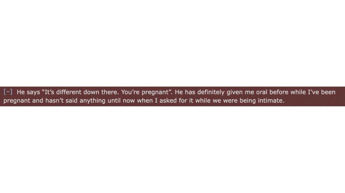 Tag : Woman Says Shes Upset Husband Wont Perform One Certain Sex Act On Her While Shes Pregnant