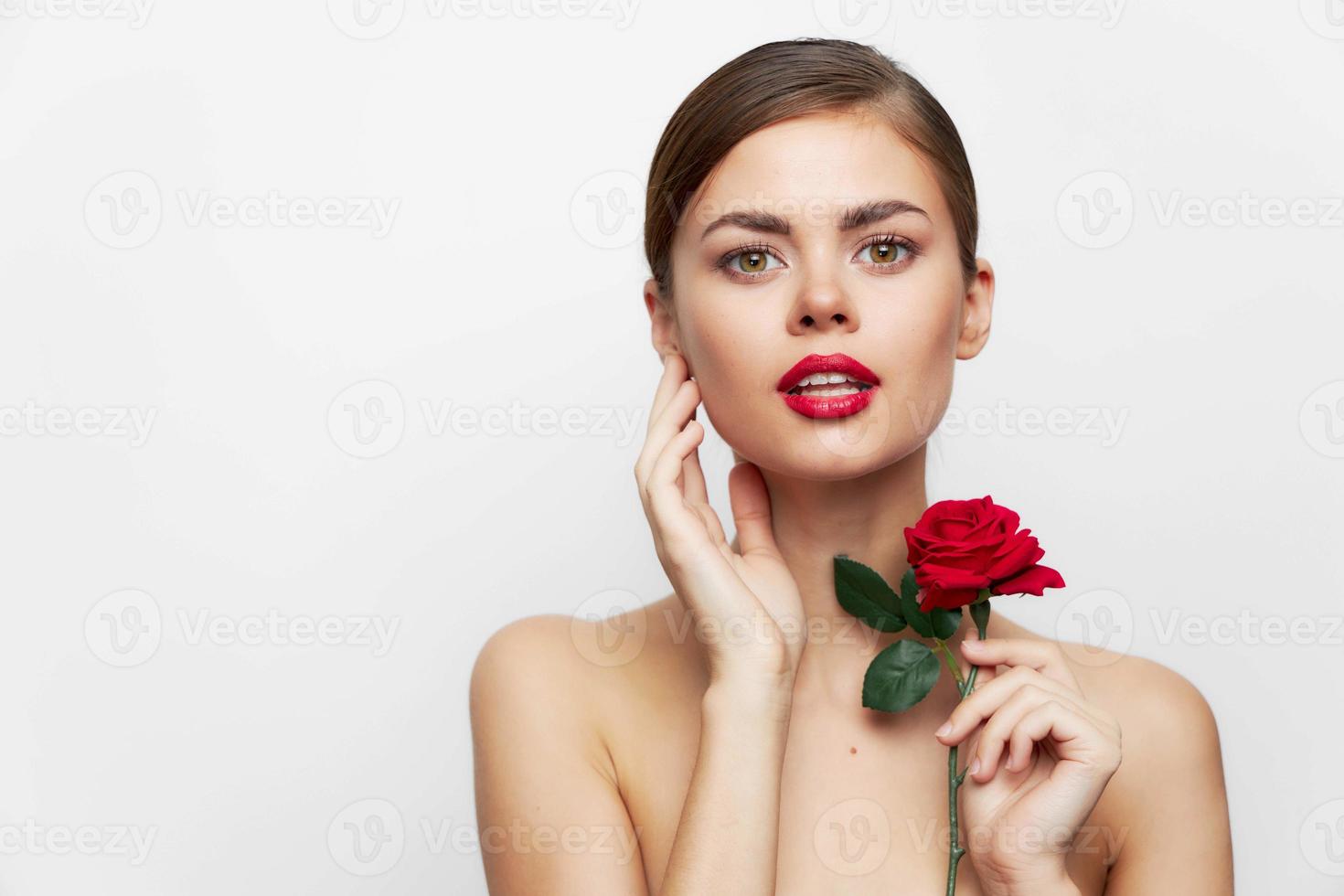 Tag : Woman With Flower Red Lips Naked Shoulders Cute Face Stock Photo At Vecteezy