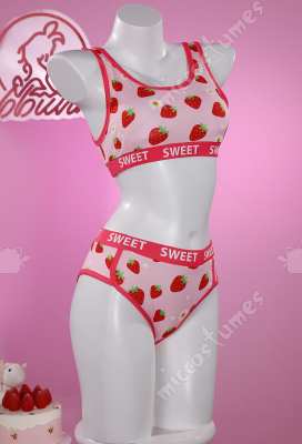 Women Costume Strawberry Daisy Pattern Sports Top And Brief Sexy Lingerie Set Top Quality is a popular picture for sexy and hot.