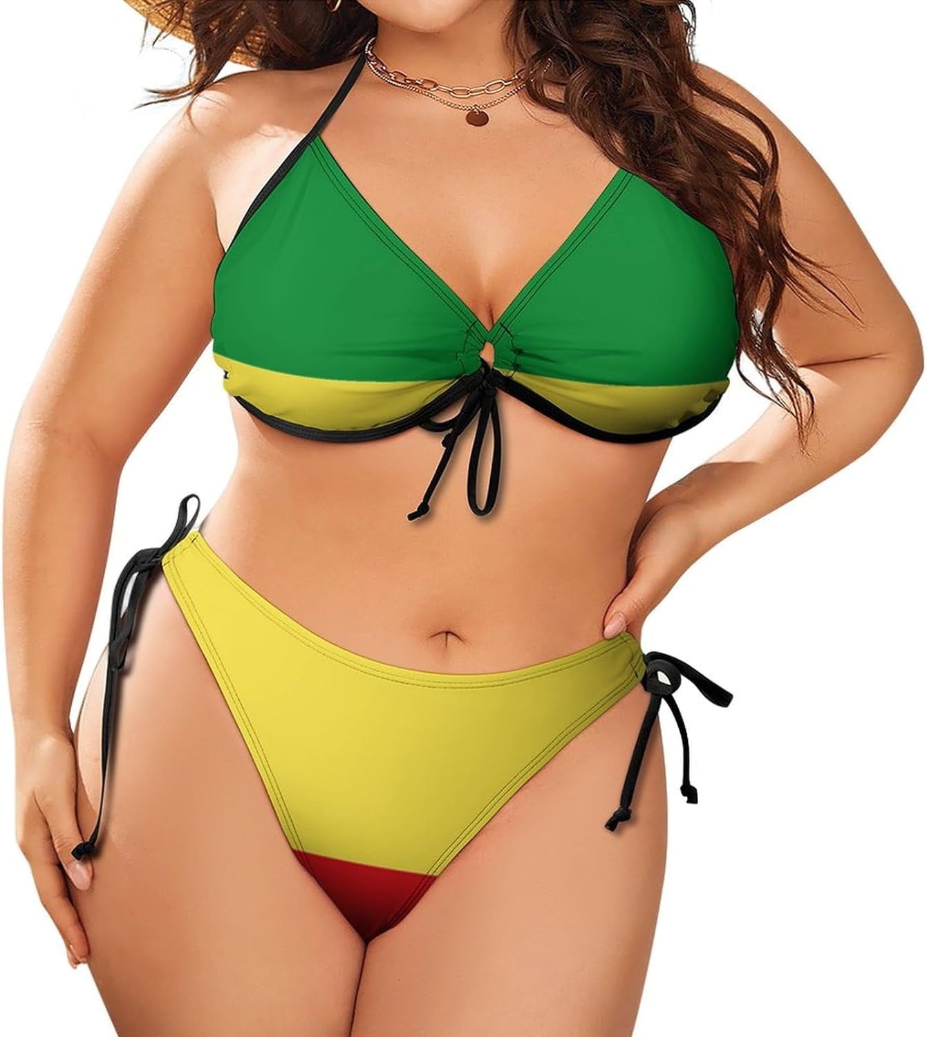 Tag : Women Ethiopian Flag Plus Size String Triangle Bikini Set Adjustable Halter Side Tie Swimsuit