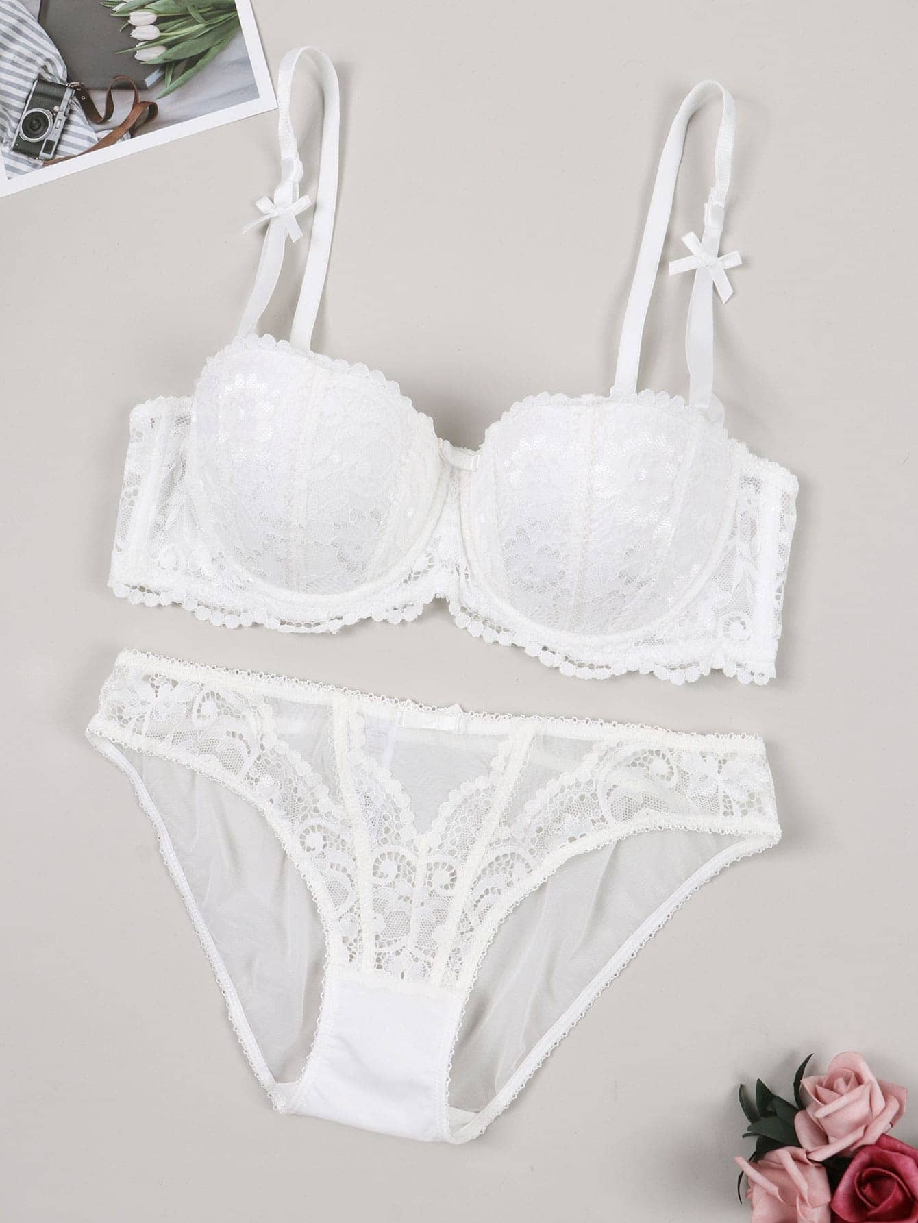 Women Lingerie Set Sexy Lace Half Cup Underwire Push Up Bra And Panty Set Shein Usa is a popular picture for sexy and hot.