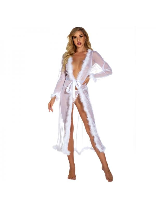 Women Long Lace Lingerie Plush Feather Nightgown Kimono Robe Sexy See Through Sheer Babydoll pictures has 500 x 400 · 50 kB · jpeg.