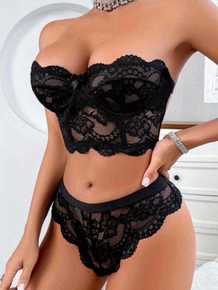 Women S Piece Lingerie Set Scalloped Trim Strapless Lace Bra And Panty Set Sleepwear For is a popular picture for sexy and hot.