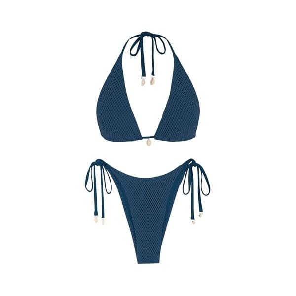 Women S Triangle Bikini Multiway Fishnet Tie Side Bandeau Halter String Bikini Set Two Piece is a popular picture for sexy and hot.