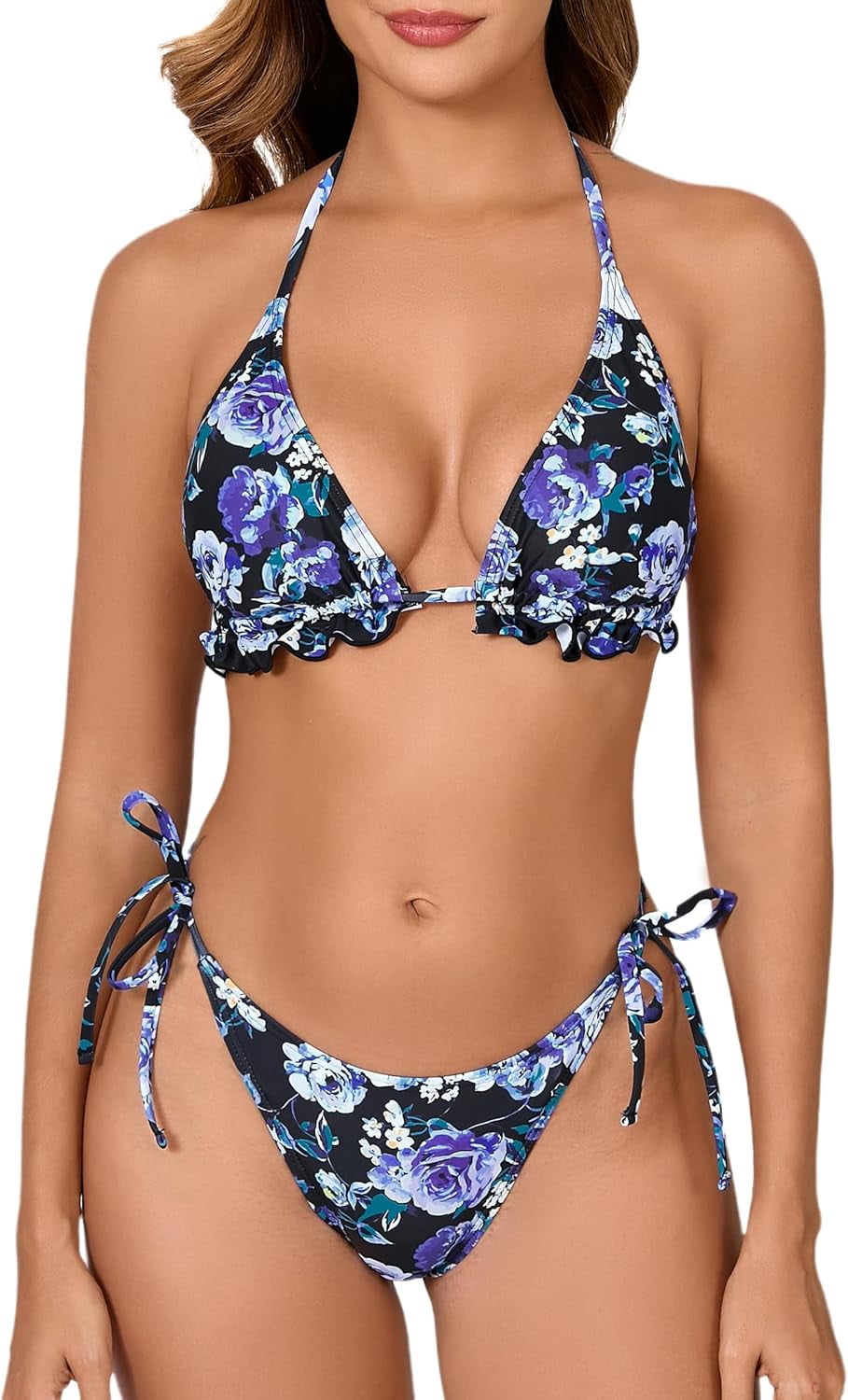 Women S Two Piece Triangle Bikini Sets Ruffle Halter Tie Side String Adjustable Sexy Swimsut is a popular picture for sexy and hot.