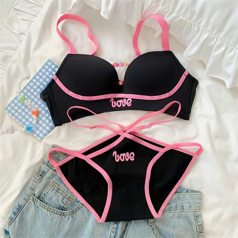 Women S Underwear Set Push Up Bra Cotton Panties Wireless Lingerie Small Chest Gathered Bralette is a popular picture for sexy and hot.