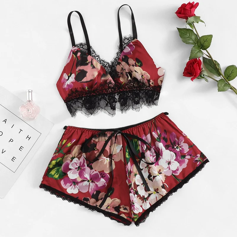Tag : Women Sexy Lingerie Set Short Satin Fabric Lace Trim Sexy Nighty Set Buy Pajama Suit Womens