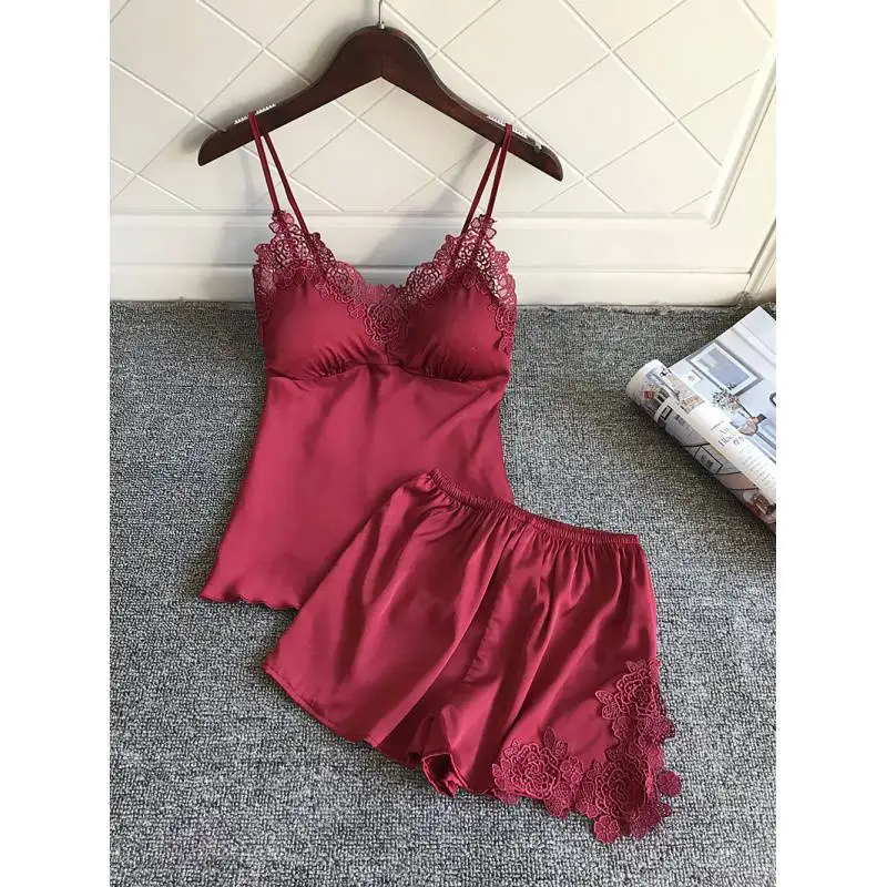 Women Sexy Pajama Set With Chest Pad Hot Pajama Pants Sling Ice Silk Two Piece Pajamas Buy is a popular picture for sexy and hot.