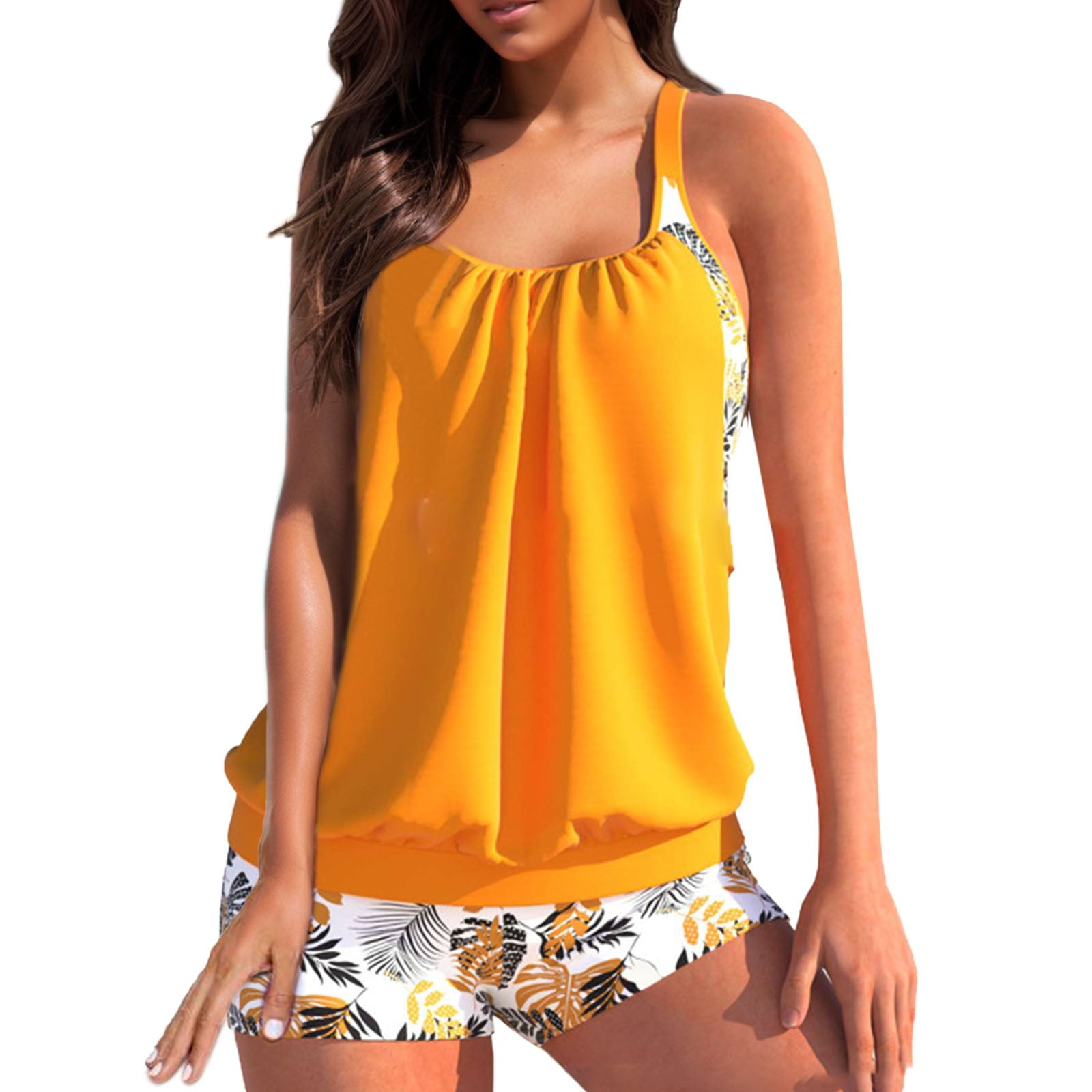 Women With Breast Pad Without Bracket Large Size Split Bikini Color Print Swimsuit Orange L is a popular picture for sexy and hot.