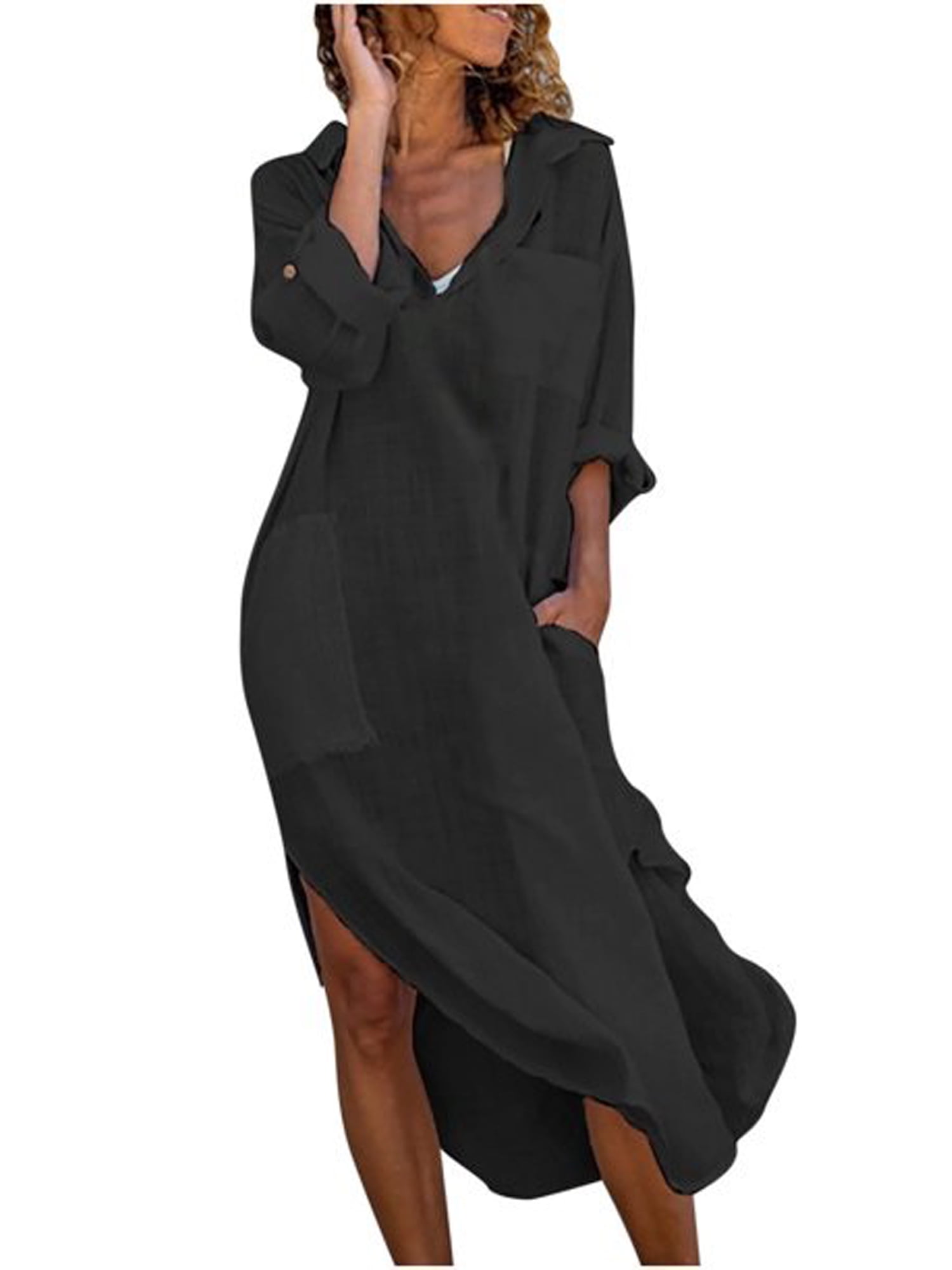 Womens Bikini Bathing Suit Cover Up Long Dress Button Down Long Sleeve Side Split Beach Cover is a popular picture for sexy and hot.