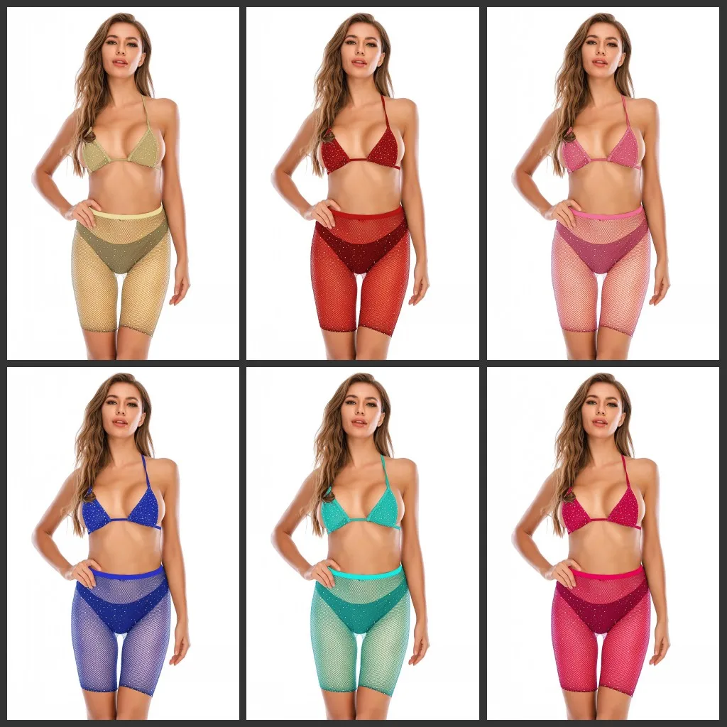 Tag : Womens Bikini Set Glitter Rhinestone Fishnet Bra Shorts Swimwear Swimsuit Bathing Beachwear