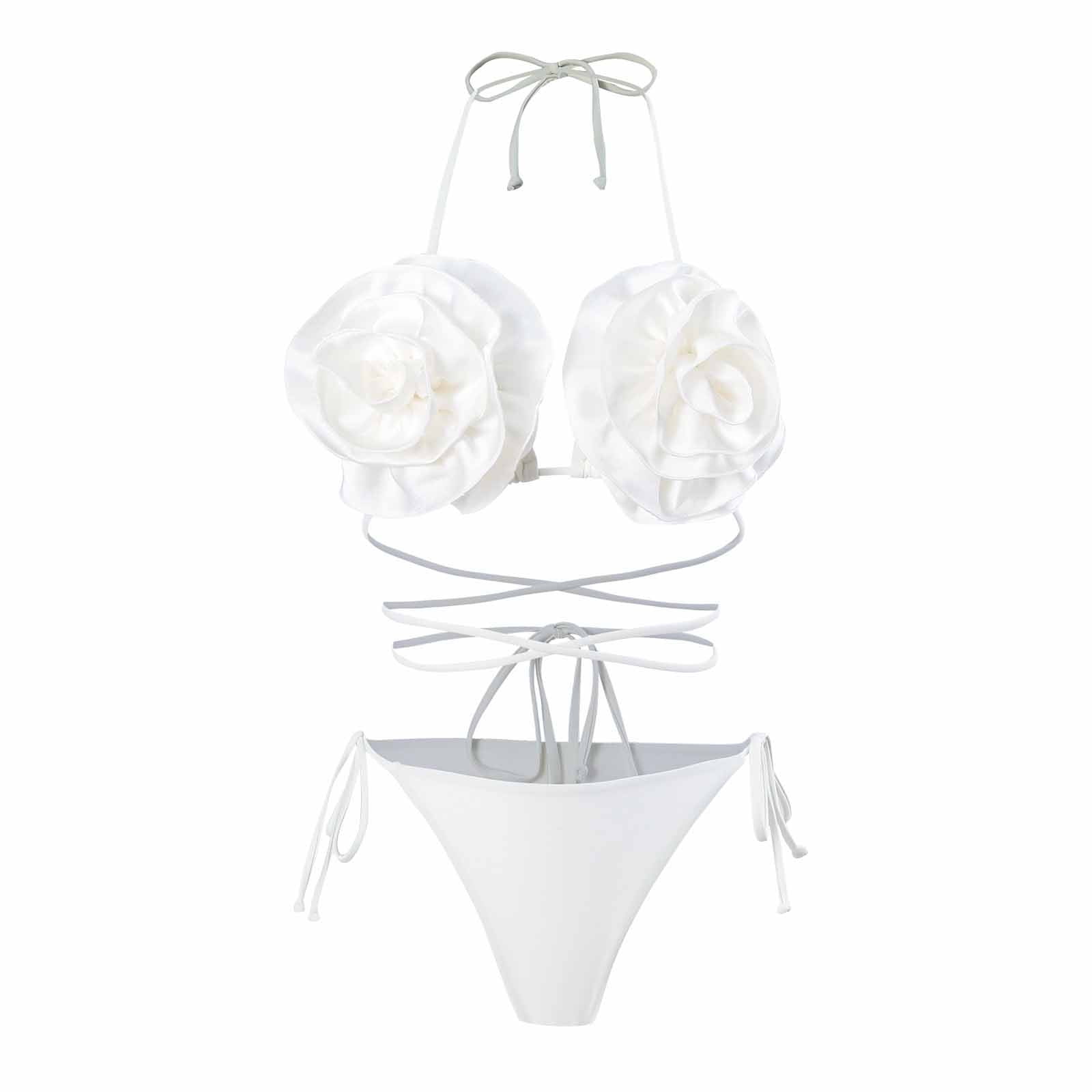 Tag : Wreesh Womens String Bikini Sets Swimsuit Bikini Three Dimensional Flower Strap Swimsuit Strap