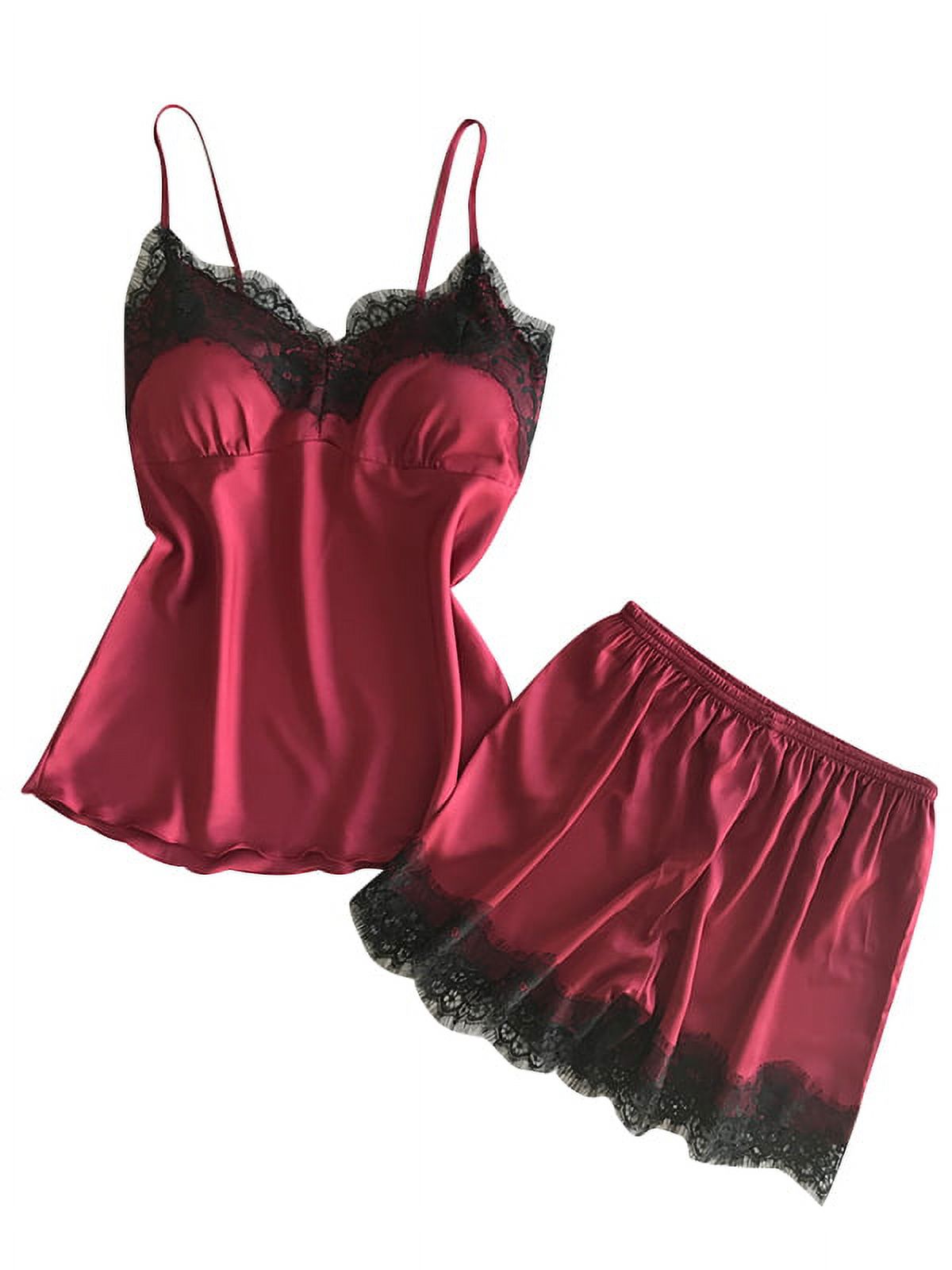 Wtpretty Womens Satin Silk Pajamas Suit Camisole Short Home Lounge Wear Lingerie Nightwear 212310