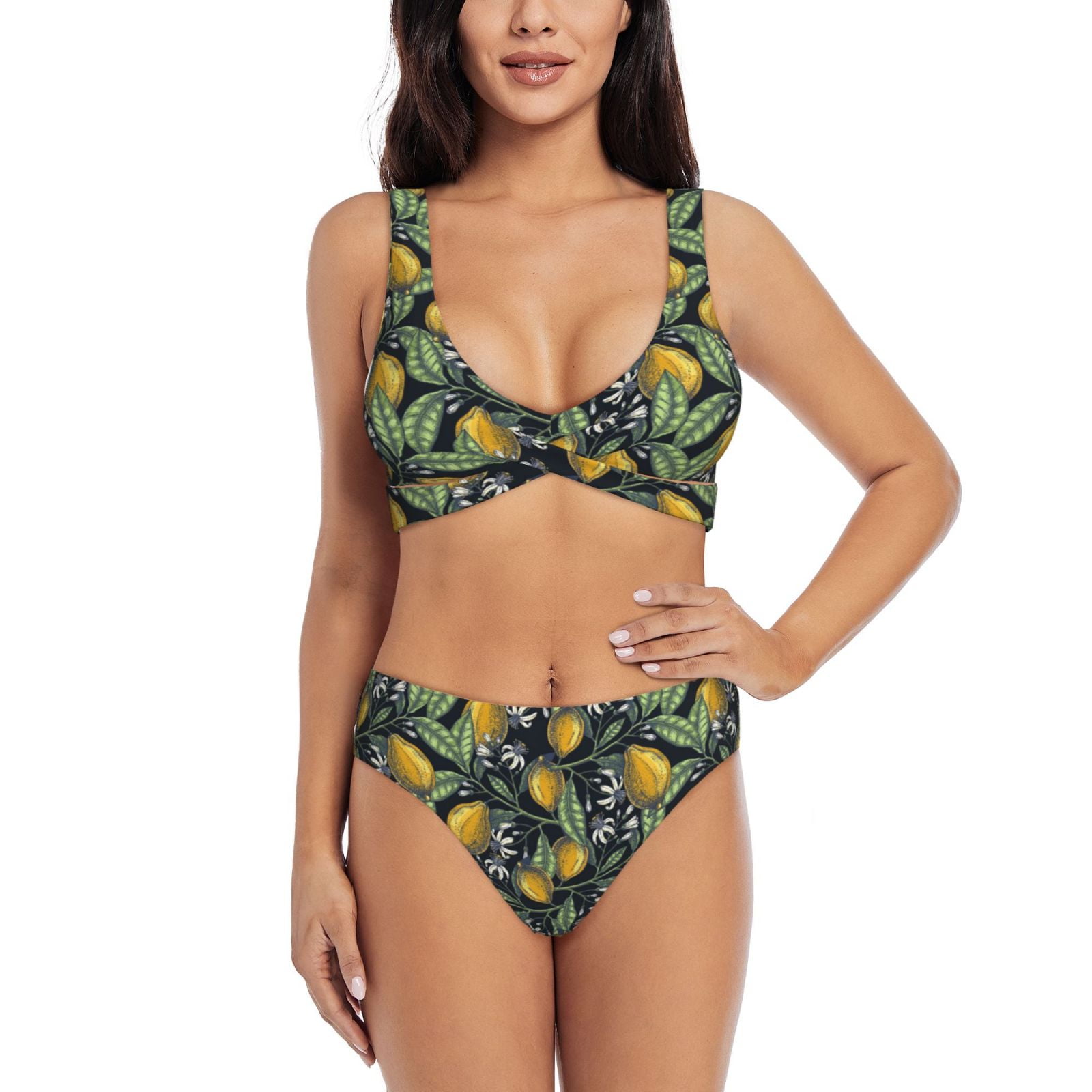 Tag : Wukai Hand Drawn Citrus Fruits Elegant Lemons Women S Bikini Set Two Piece Wimsuit High Waisted