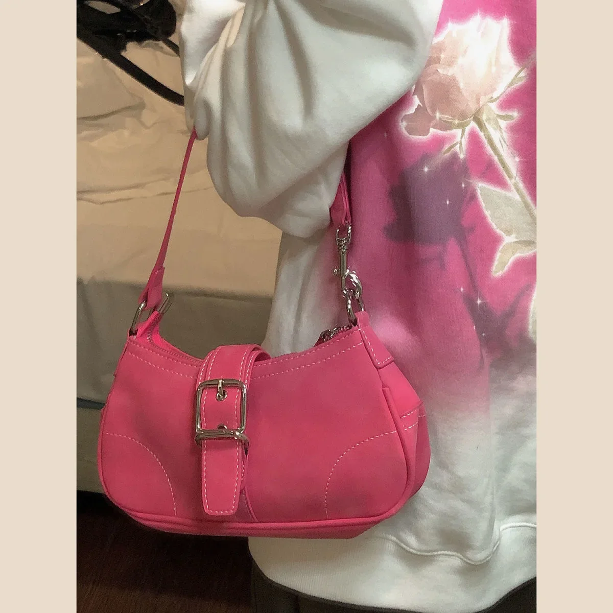 Y K Sweet Cool Women S Underarm Bag Hot Girls Pink Shoulder Bags Messenger Bag Retro Design
