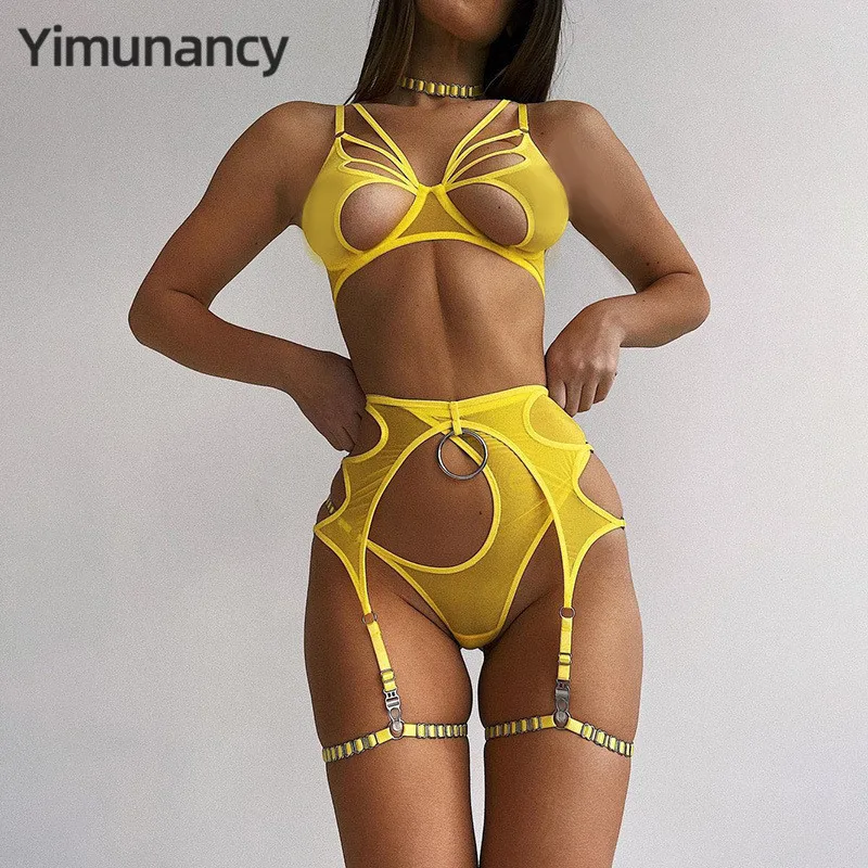 Tag : Yimunancy Piece Mesh Exotic Set Women Choker Bandage Fancy Kit Yellow Cut Out Sexy Lingerie