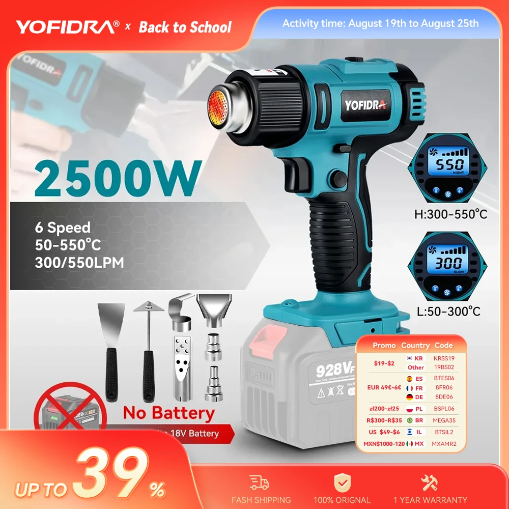 Tag : Yofidra Cordless Heat Gun Wind Speed Gear Led Temperature Display Industrial Home Hot
