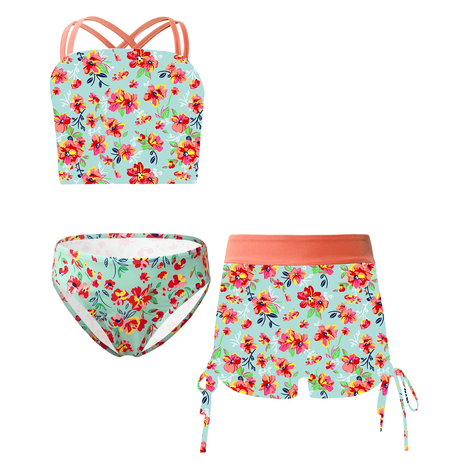 Yonghs Big Girls Pcs Tropical Rash Guard Tankini Bikini Set Crop Top With Briefs Shorts