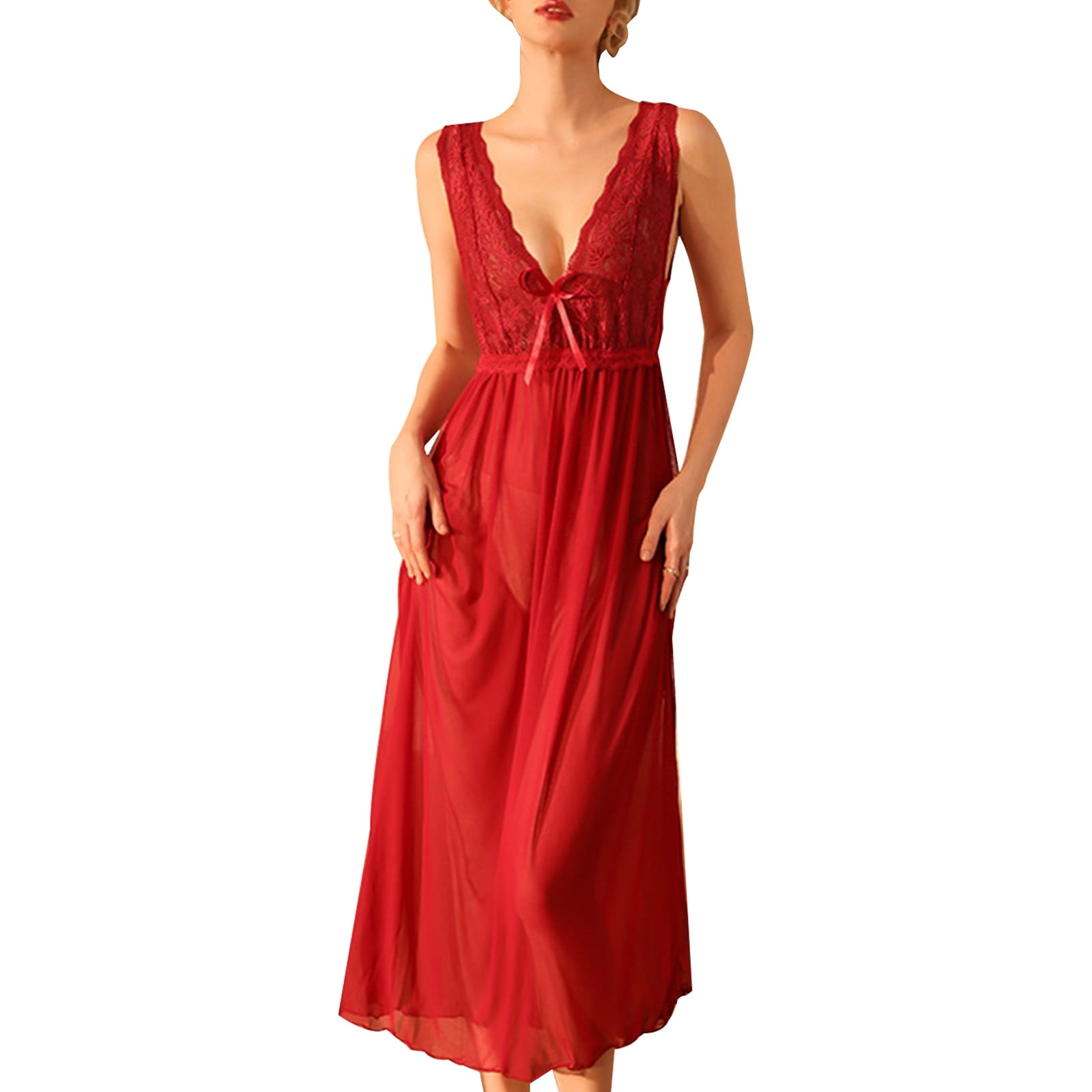 Yuhangmm Sexy Lingerie For Women V Neck Lace Sheer Mesh Sleepwear Nightwear Comfortable Homewear is a popular picture for sexy and hot.