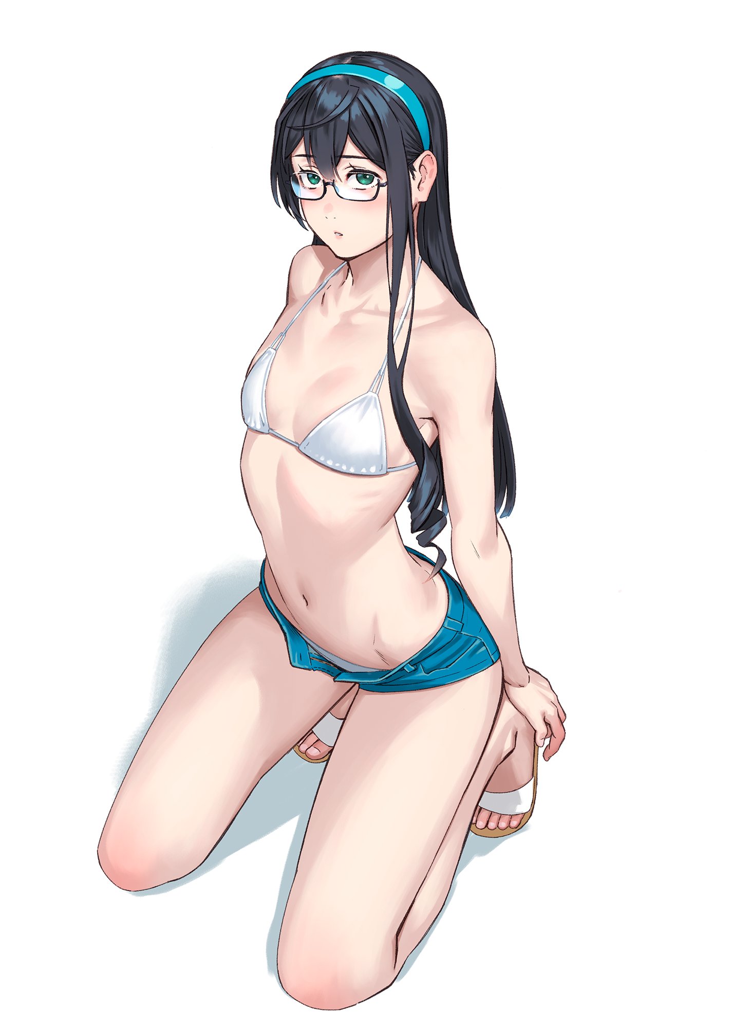 Yuuji And Ooyodo Kancolle Kantai Collection Highres 1girl Bikini Denim Denim Shorts is a popular picture for sexy and hot.