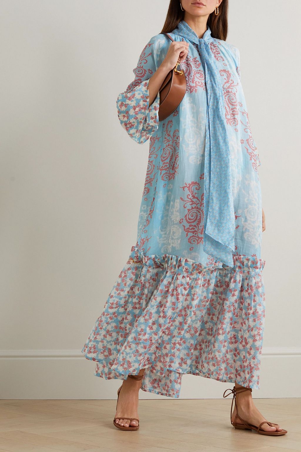 Tag : Yvonne S Angelica Pussy Bow Tiered Printed Linen Maxi Dress The Outnet