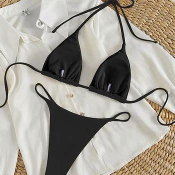 Zaful Women S Lace Bowknot Halter Tie String Thong Triangle Upside Down Bikini Set Matching Two
