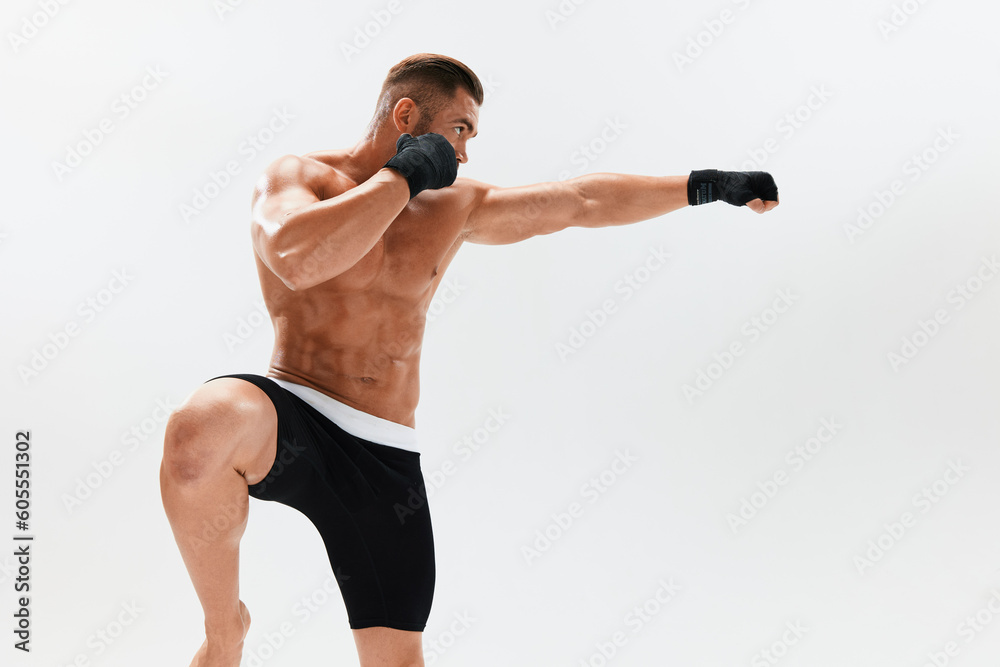 Zdj Cie Stock Man Athletic Bodybuilder Poses In Boxing Gloves With Nude Torso Abs In Full is a popular picture for sexy and hot.