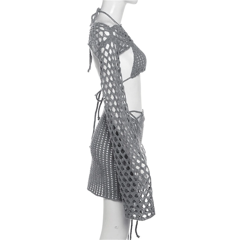Tag : Zhezhe Women Knit Sexy Piece Set Women Solid Bandage Backless Bikini Full Sleeve Super