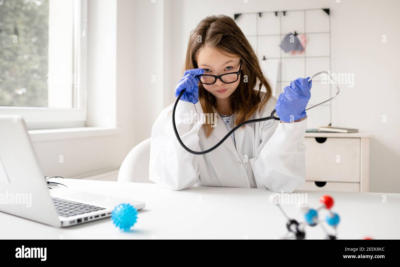 Tag : Ziemlich Blonde Und Junge Schulm Dchen Ist Spielen Arzt Und Hat Wei E Schutzhandschuhe Und Blaue