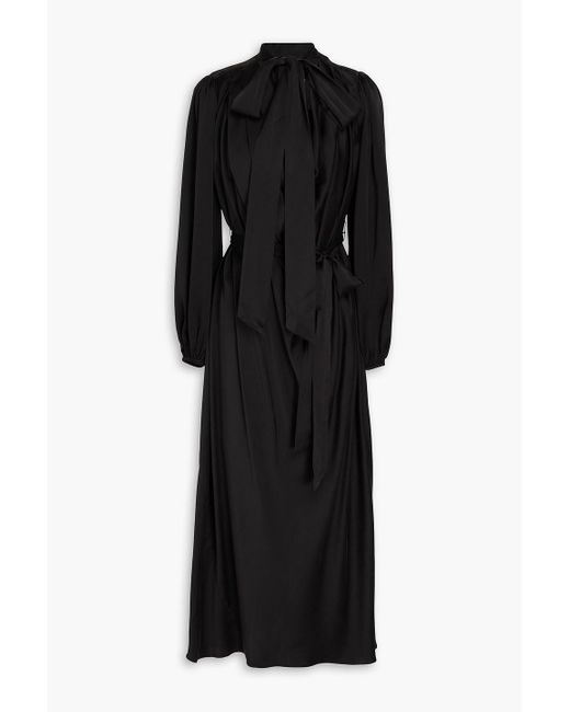 Zimmermann Pussy Bow Silk Satin Midi Dress In Black Lyst
