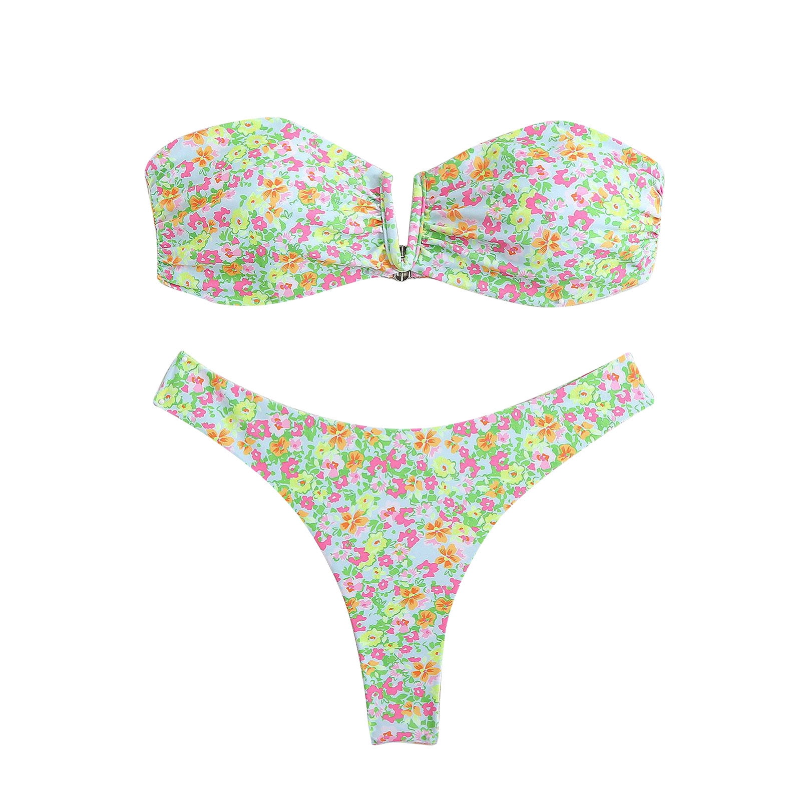Zqgjb Women S Piece Bandeau Swimsuit Vintaged Floral Print Summer Cut Out V Neck Bikini Set is a popular picture for sexy and hot.