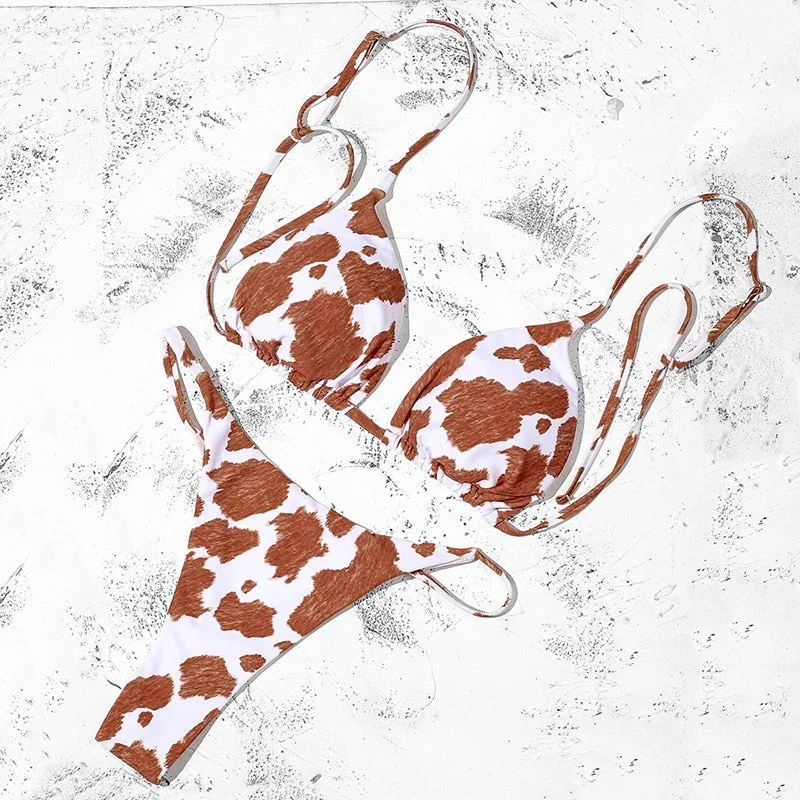Ztvitality Sexy Bikinis Push Up Bikini Newest Straps Padded Bra Cow Print Bandage Swimsuit